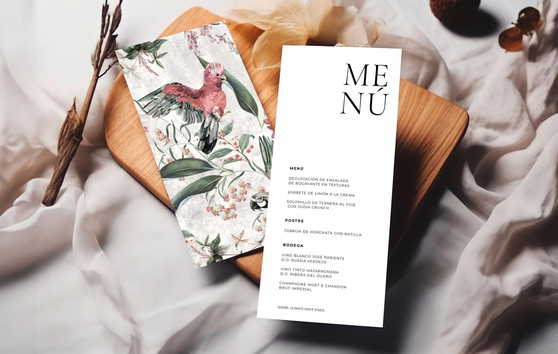 Incluso la papelería —como los menús o los carteles de bienvenida— puede integrarse con diseños tropicales impresos en papel texturizado o reciclado, con tipografías desenfadadas, minilimalistas y/o elegantes. Esta estampado tienen mil opciones ¡Te atreves !