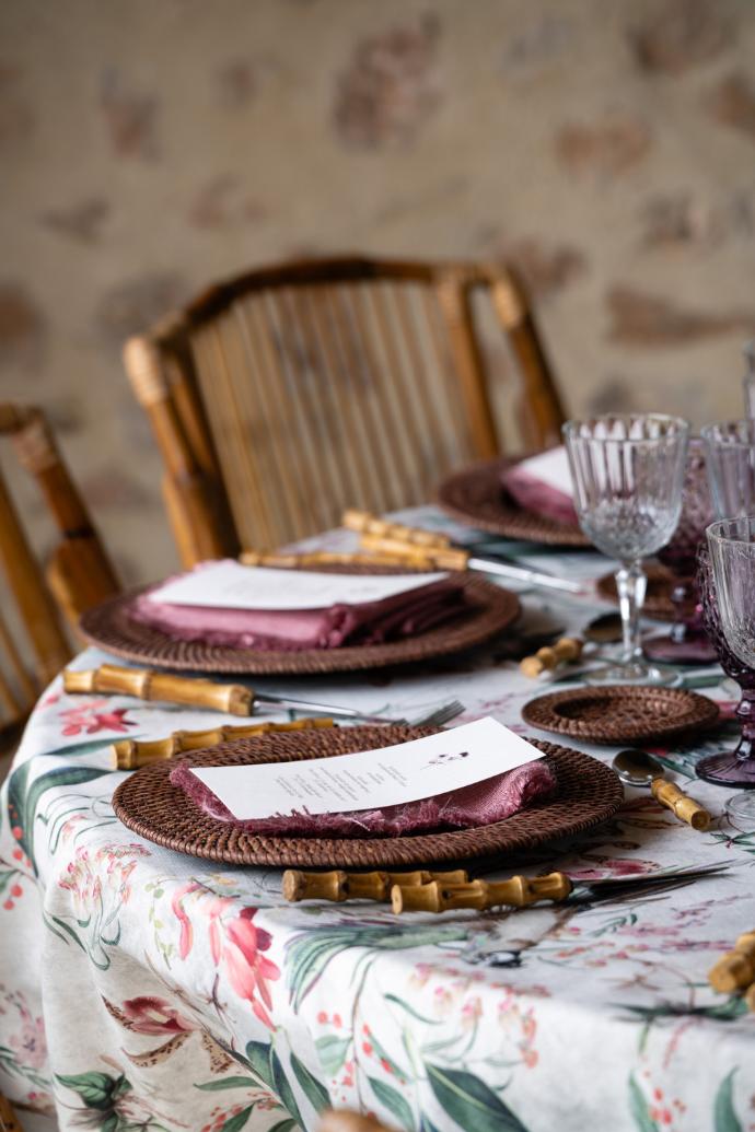 Es increíble cómo se puede potenciar este mantel con una selección de elementos que combinan perfectamente con este estilo tan tropical y sofisticado.