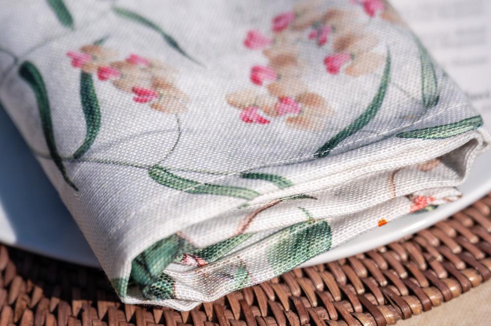 Servilletas a juego con el mantel Trópico, que aportan cohesión visual.