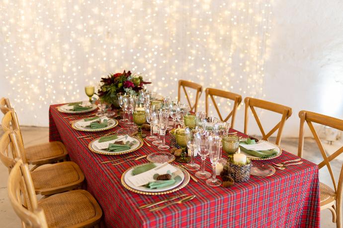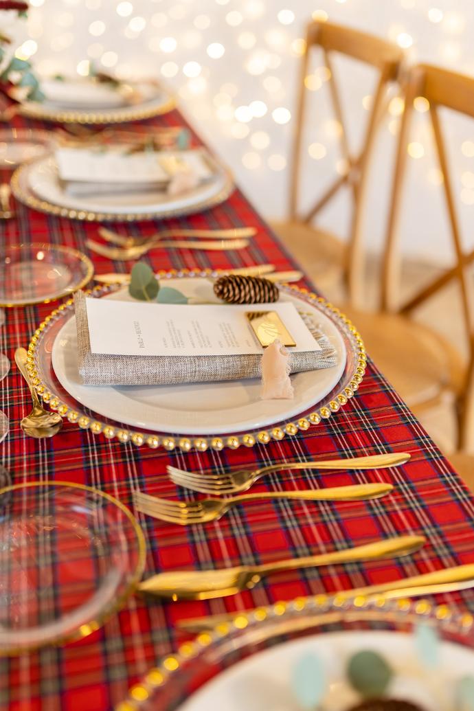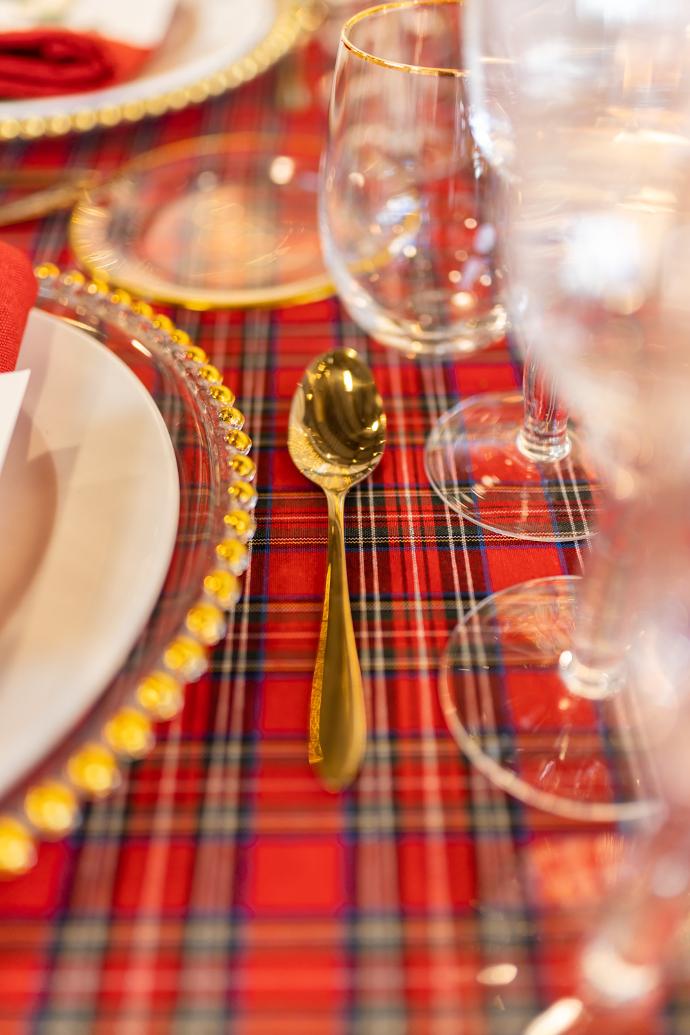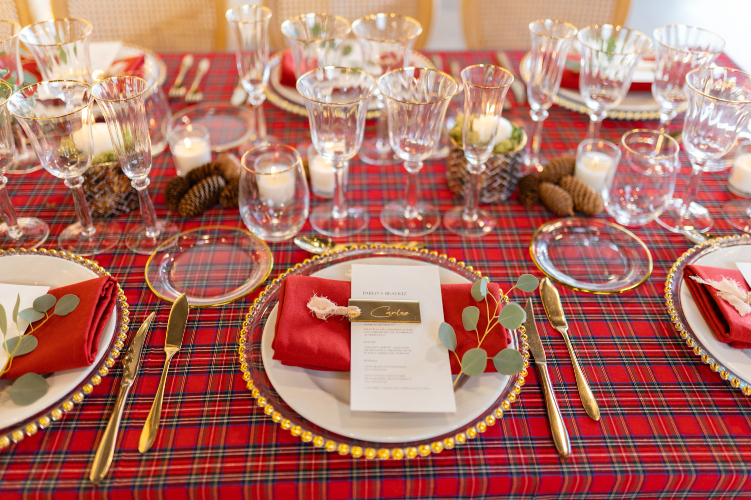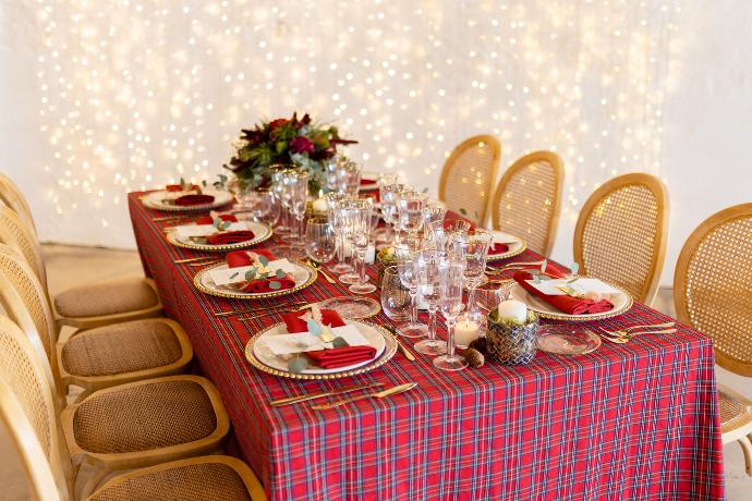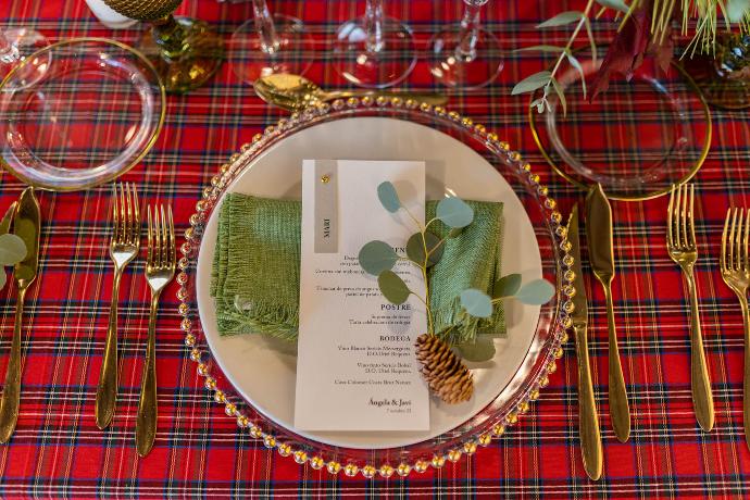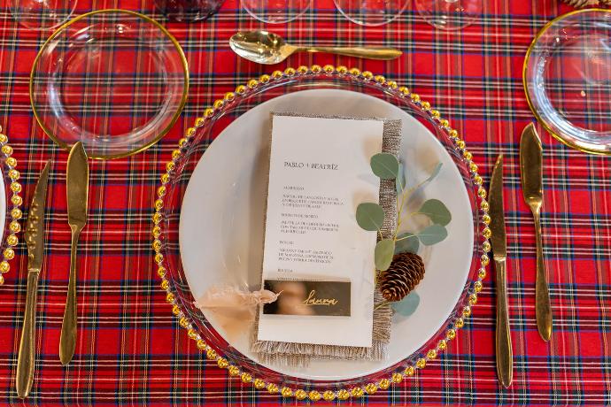 La primera propuesta que os hacemos para que sorprendáis a vuestros invitados es un montaje de mesa al puro estilo americano de clásica Navidad. Utilizar los colores clásicos de esta temporada siempre es un acierto seguro. Un mantel de cuadros tartán en color rojo como fondo de la mesa, siempre nos recuerda a las películas de Navidad tan típicas de esta época. Ahora vosotros también podéis recrear esas mesas de película en vuestras casas con todo el material disponible y las novedades que hay en nuestra web.