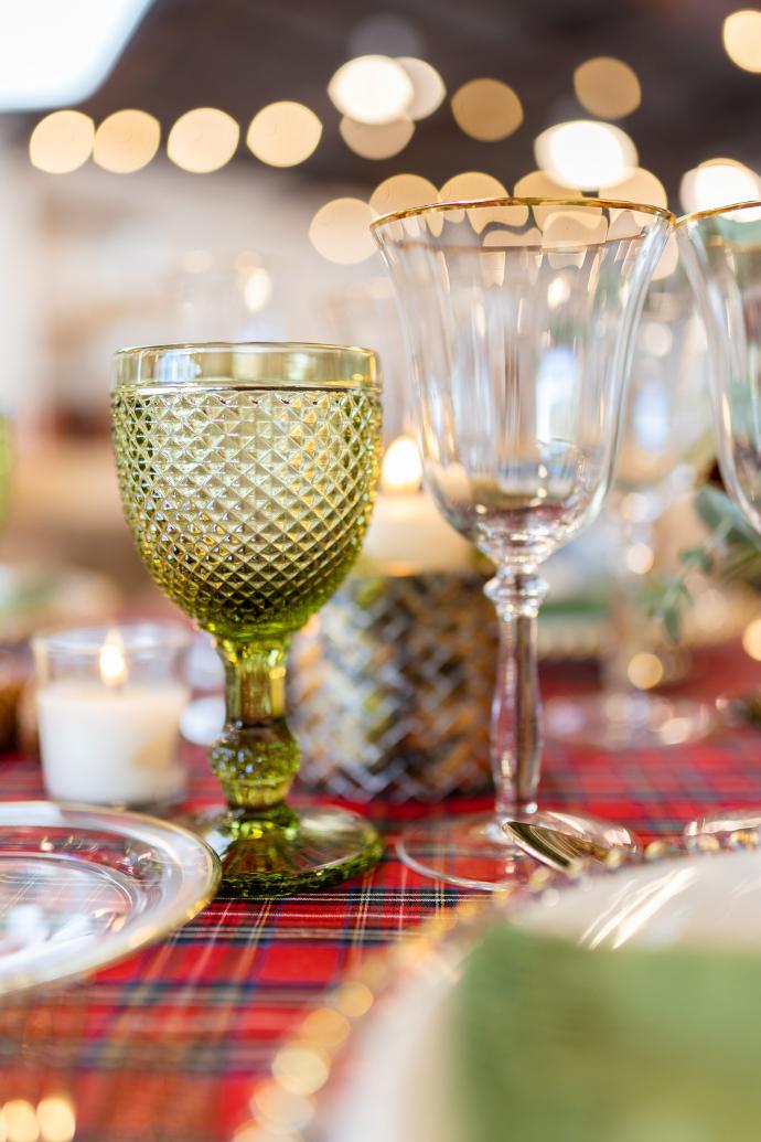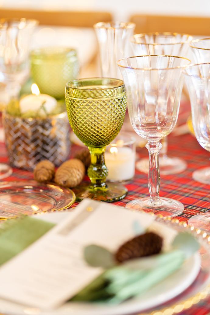2. Un toque verde hoja: Aportar un color verde a tu mesa sorprenderá a tus invitados, un toque más arriesgado que puedes añadir a tu mesa con nuestra servilleta de flecos verde hoja. Esta servilleta combina perfectamente con la copa verde rombo. Un conjunto ideal si buscas la armonía perfecta para tu mesa de Navidad.