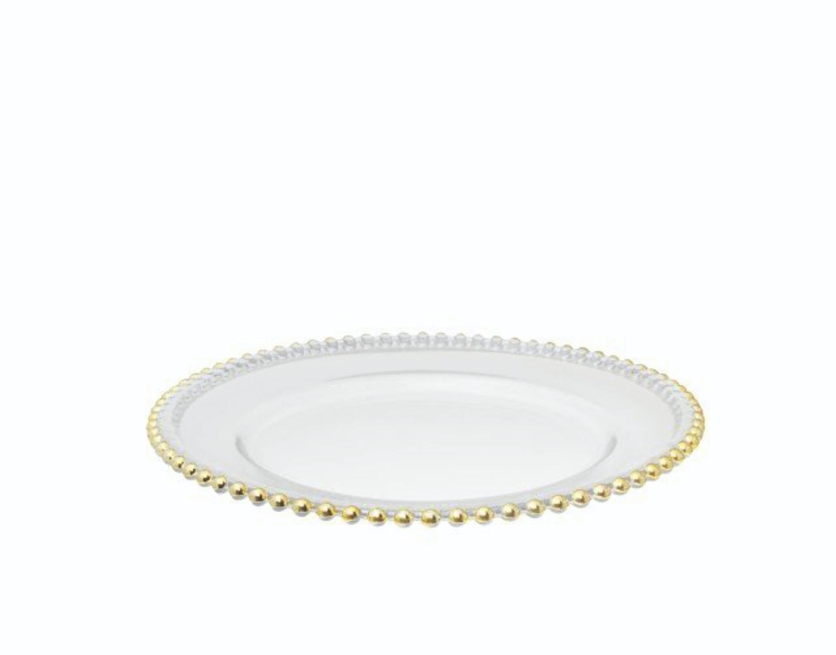 2. Una mesa de contrastes: Si queremos que nuestra mesa sea pura elegancia, ¿qué tal si hacemos un cambio total a la propuesta anterior? Tanto en la cristalería como en el plato de presentación añadimos un delicado filo dorado, representa lujo en tu mesa con estos detalles dorados.